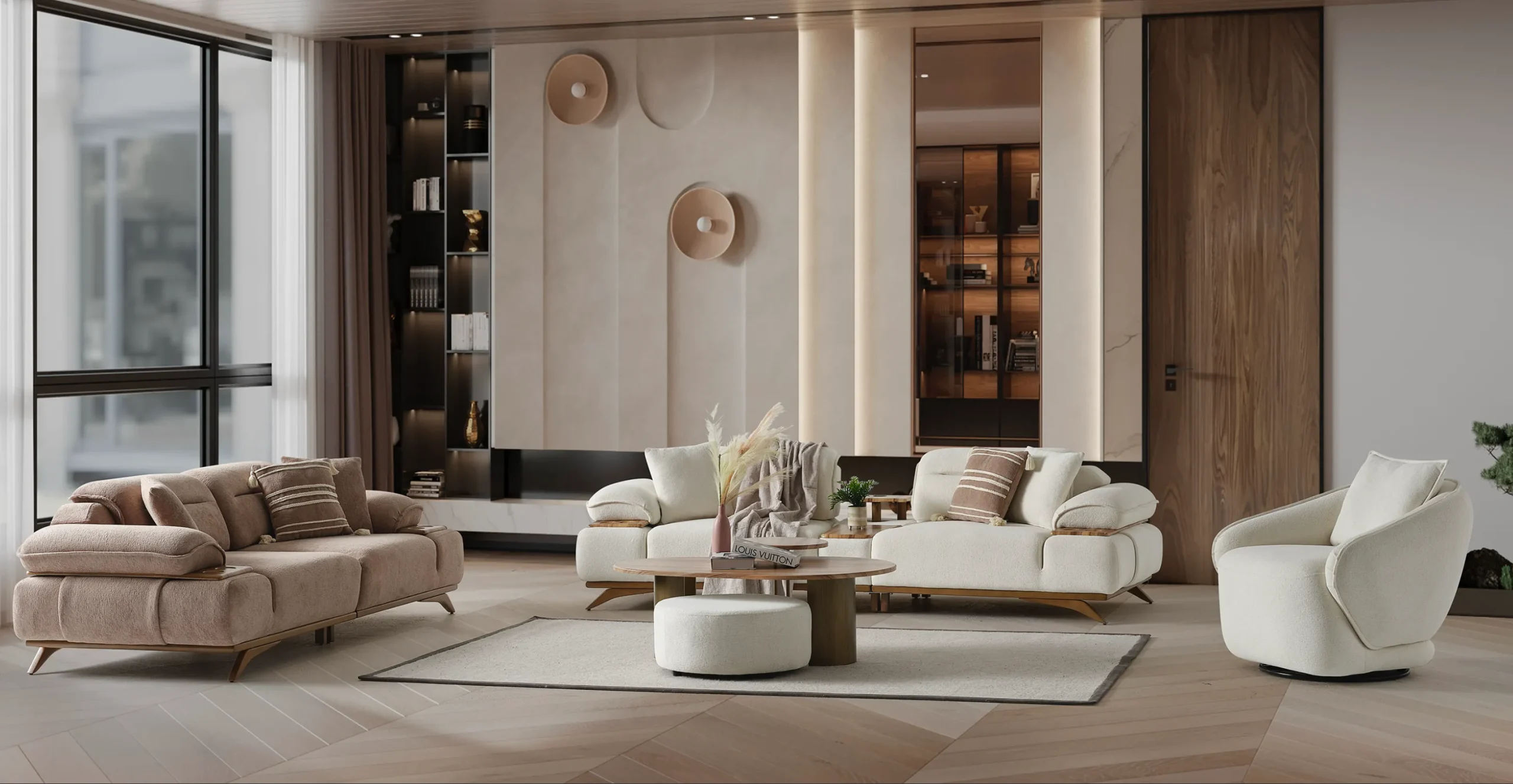 Discover the Grace Sofa Set, blending modern comfort with functional design through plush upholstery and stylish integrated wooden side tables. Perfect for creating a warm, inviting atmosphere. You can customize the Grace Sofa Set. For other versions, type “Grace” in the search box. Contact us to bring this Grace Sofa Set from Turkey to your home with SofaTurkey assurance.