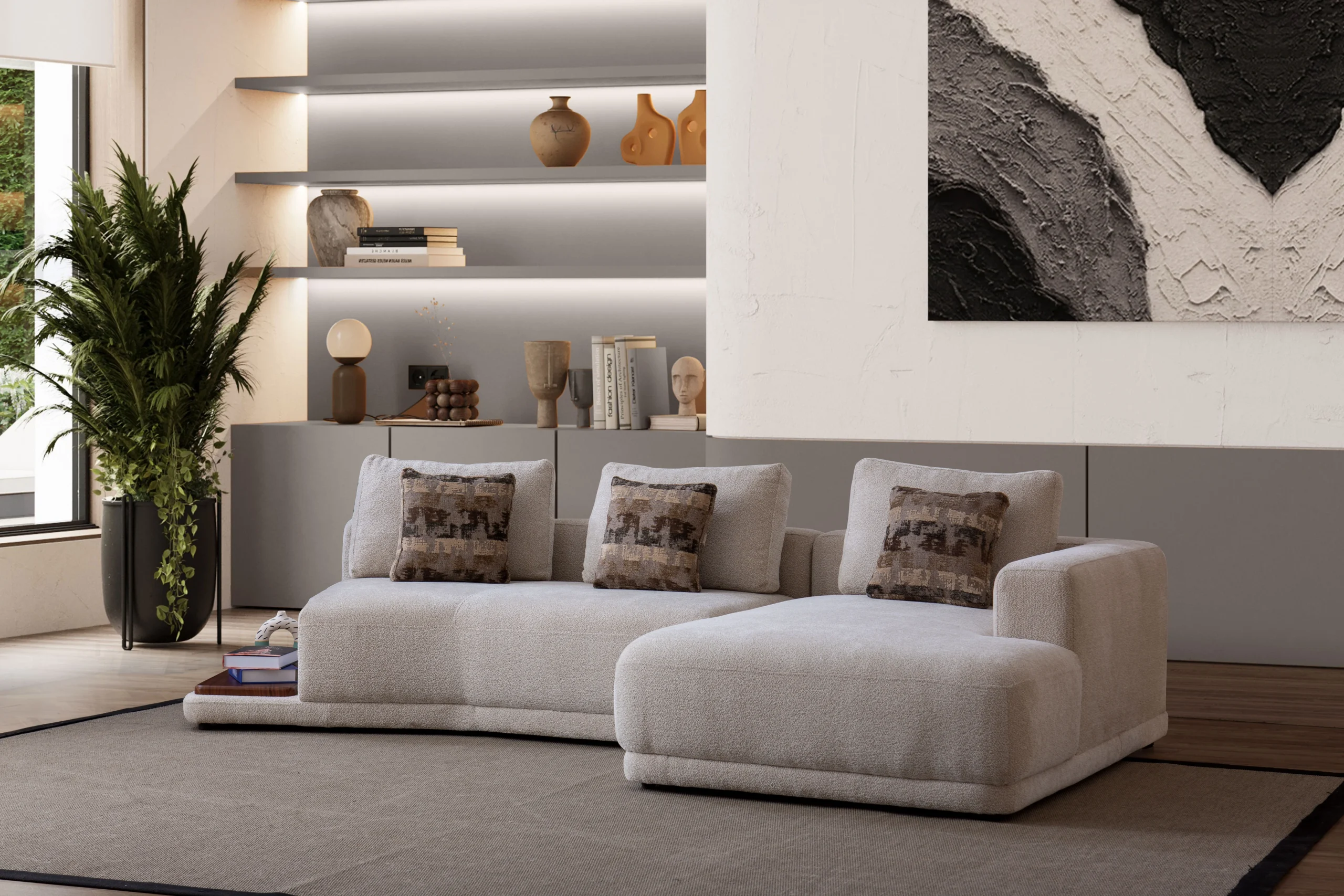 The Kiva Corner Sofa embodies the ultimate in relaxation and modular luxury. Designed with a sleek, contemporary aesthetic, this spacious sectional offers premium comfort and masterful Turkish craftsmanship for any home. Price includes 1pcs corner sofa (3 modules). For other versions, type “Kiva” in the search box.