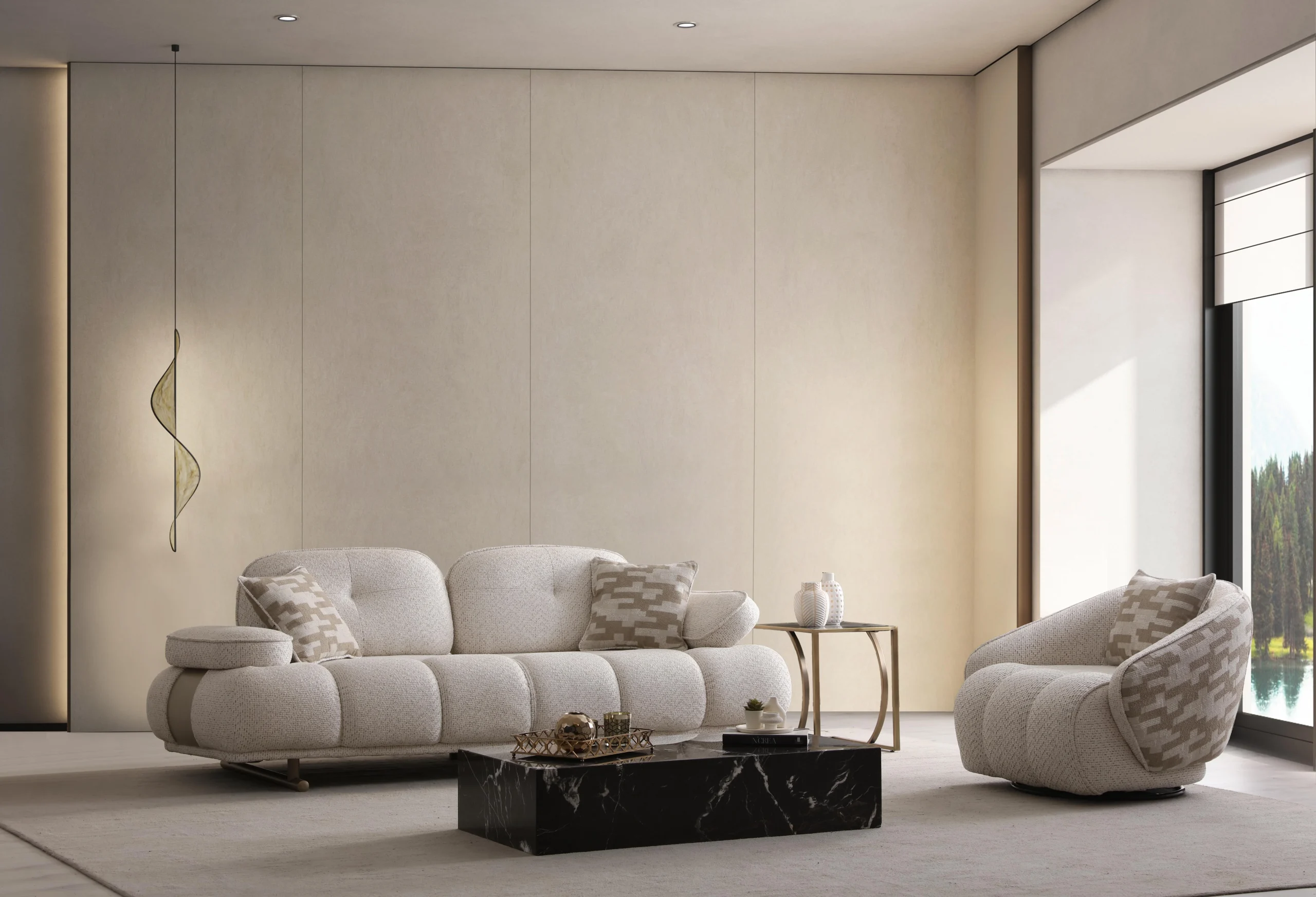 Embrace a new era of home life with the Levni Sofa Set. This collection is a tribute to elite modern living, offering a profound sense of balance and an atmosphere of ultimate prestige for your sanctuary.