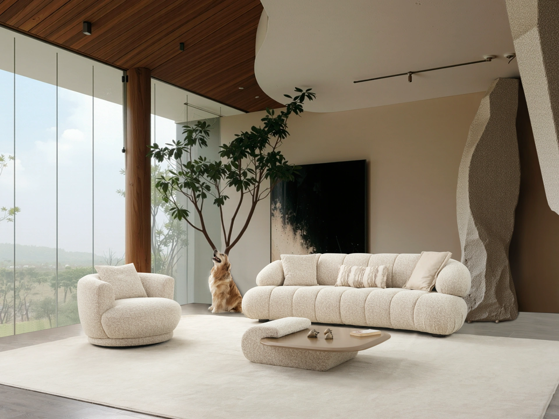 Introducing the Loris Corner Sofa Set, a centerpiece designed for those who refuse to compromise between avant-garde style and cloud-like comfort. This set features elegant upholstery that catches the light and adds a rich, tactile dimension to your living space. Its low-profile, organic silhouette is inspired by modern European design trends, making it a perfect fit for minimalist and contemporary interiors.