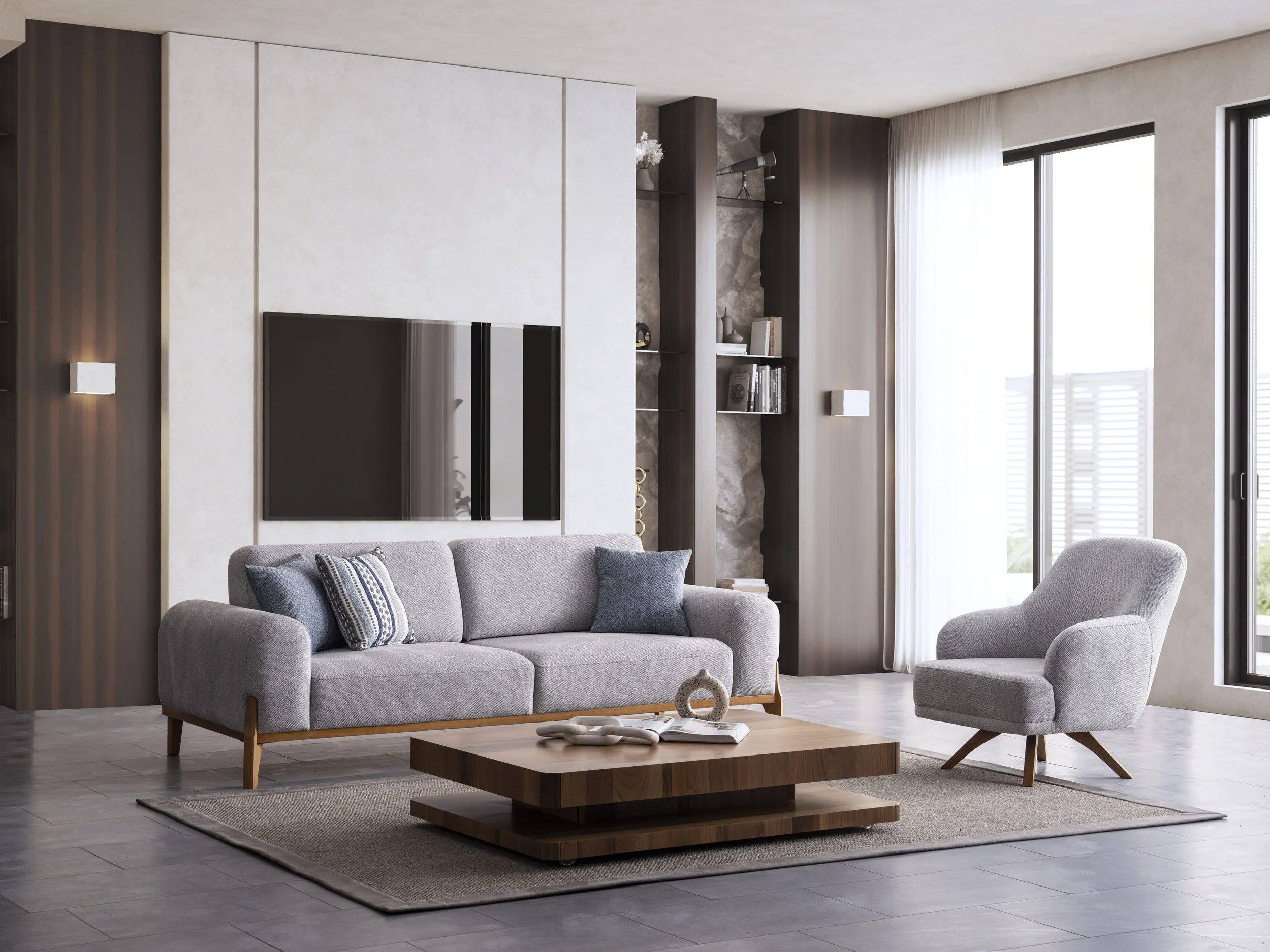 The Sera sofa set is perfect both in terms of seating comfort and visuality. I will also upload the photo. The fabric is soft, the texture is high quality and it is very easy to clean. Its compatibility with the armchair is also great. The bed feature is great. It provides a very large and comfortable area especially for my guests. I have been looking for an affordable bohemian style sofa set for 1 month. The price is very attractive. I was a little hesitant when I saw the shipping comments, but I did not have any problems with shipping. It is delivered not only to the inside of the house but also to the front of the building. However, my wife and I easily moved it inside.