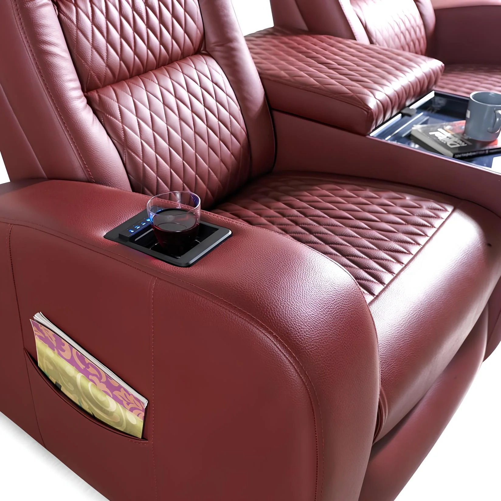 Siesta dvosed reklajner sofa ima električni mehanizam. Tu su praktičan i dostupan odlaganje areas i čaša držač. Siesta dvosed reklajner model može be primenjeno kao red sistem u poseban projekti kao VIP bioskop. (Price uključuje Čaša Držač)