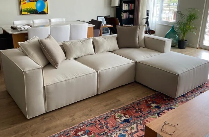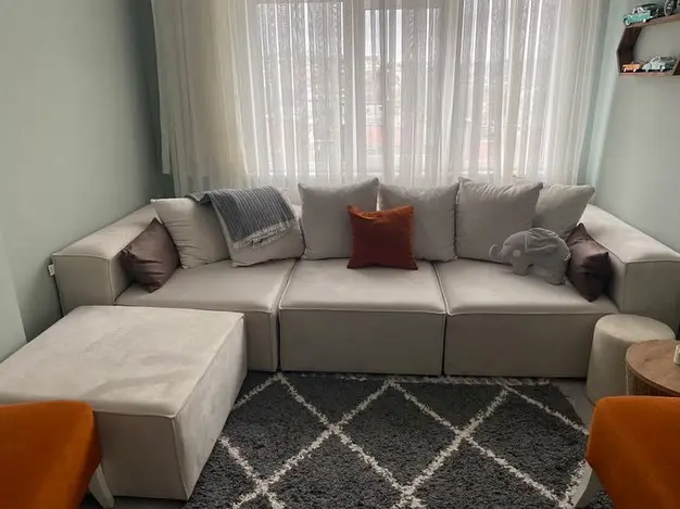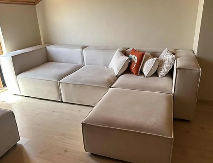 I was wondering if the structure of the sofa would deteriorate with long-term use because it has a soft seat, but I have been using it for 4 months and have not had any problems so far. The packaging was good, each module was packaged separately. I had difficulty fixing the modules together in the first days, but I got used to it over time. It is a very good sofa for its price.