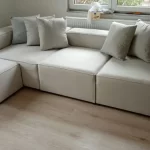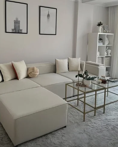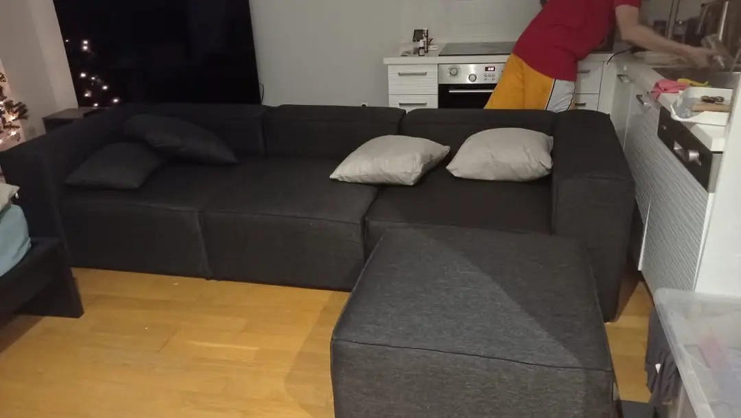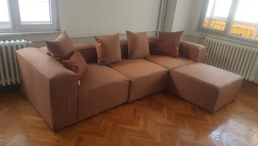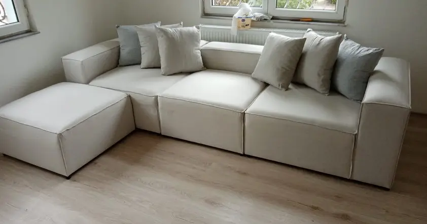 I chose this sofa primarily because of its modular design, which suited my needs perfectly. The price was very appealing, although the delivery took longer than I had anticipated. Since my living room is smaller than average, a traditional sofa set or a large sofa would have been overwhelming. For this reason, I opted for this model. The linen fabric is easy to clean, which was an important factor for me. The seat softness is just right, providing great comfort. I also want to express my gratitude for the thoughtful gifts included.