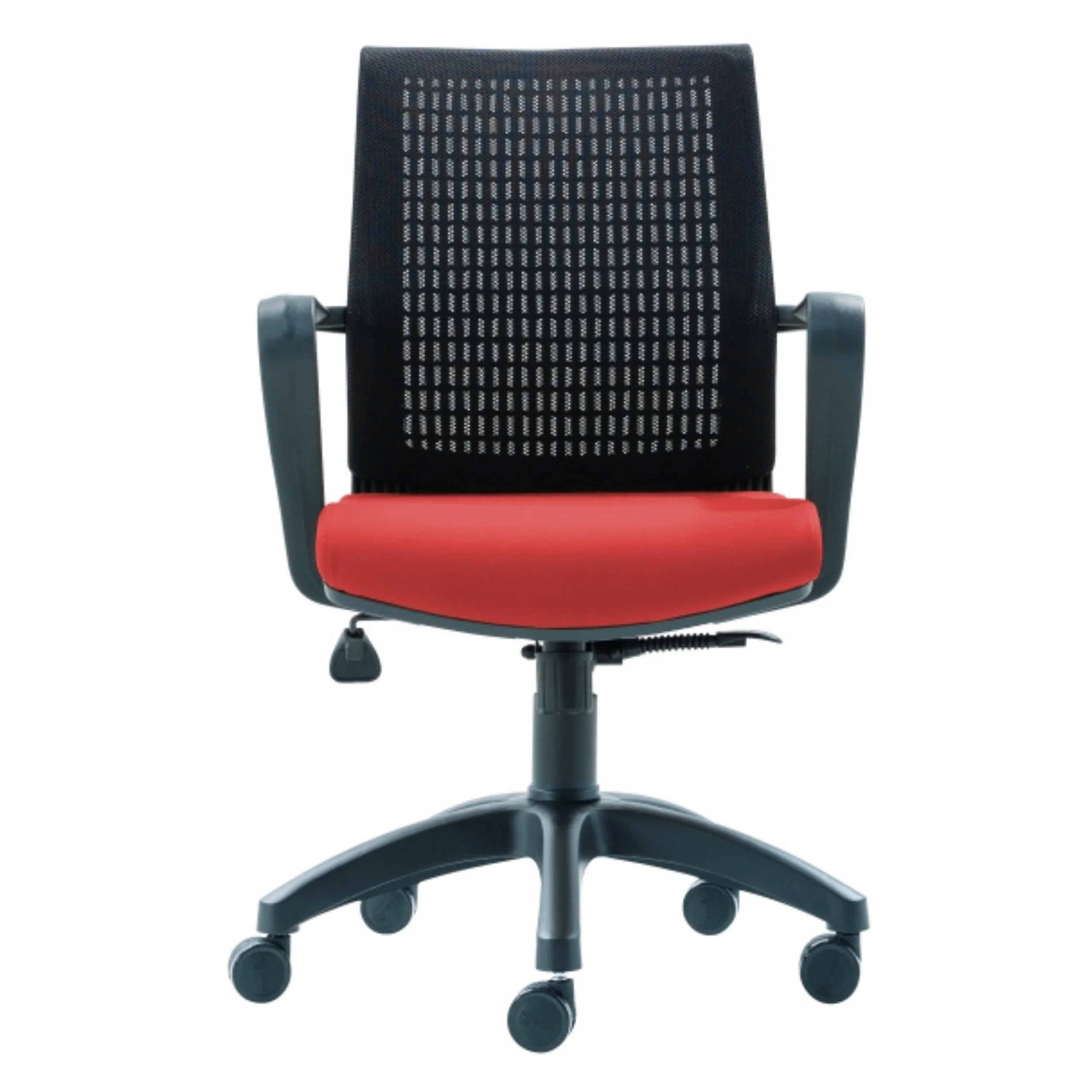 Black plastic injection frame sa mesh back, polyurethane foam seatbase, reclining i Visina adjust, gas ram, plastic star legs, special plastic wheel
