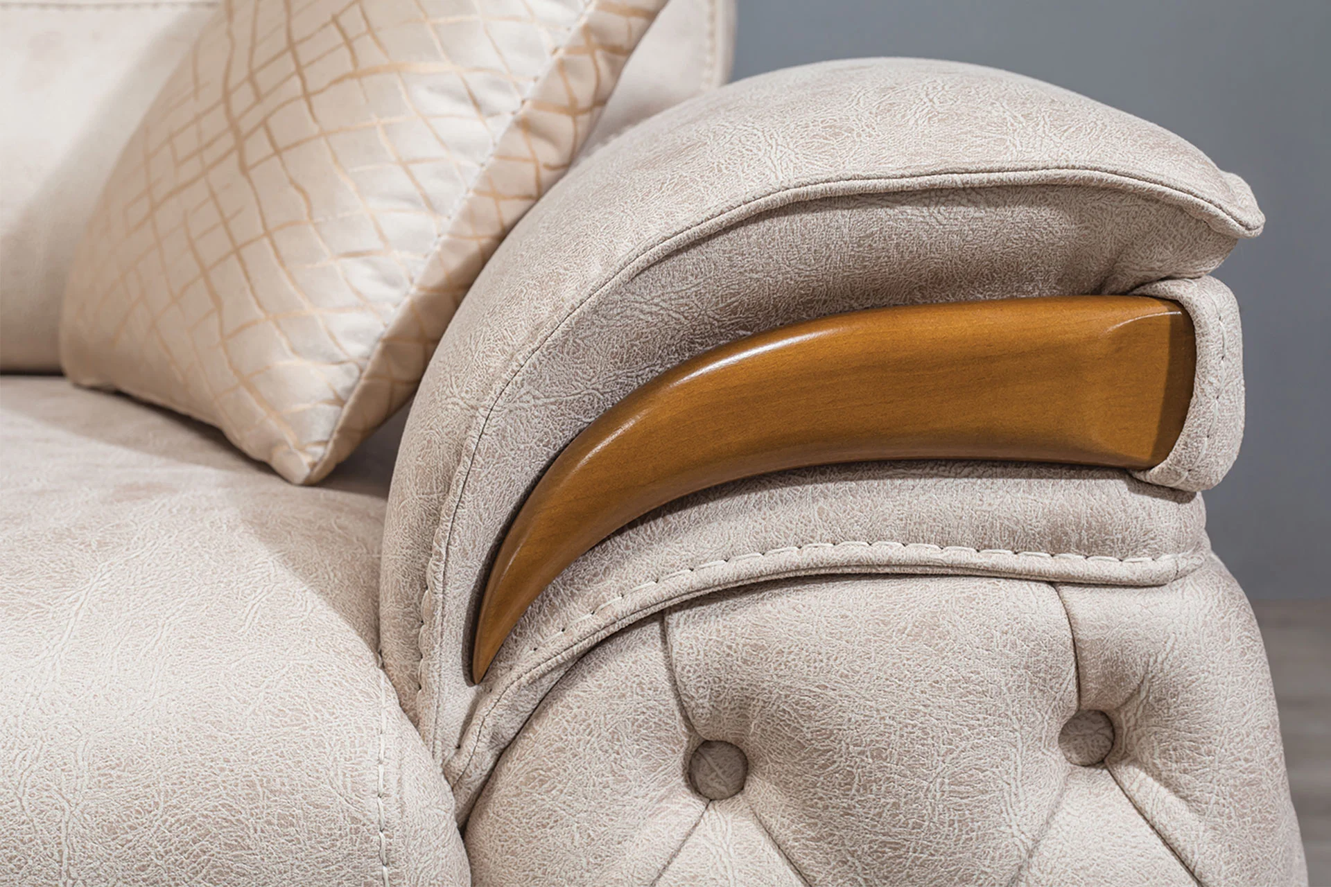 Windas garnitura privlači pažnju svojim tradicionalnim dizajnom i elegantnim drvenim detaljima.